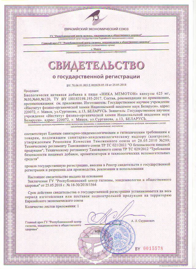 Биорегулирующий нутрицевтический препарат Ника МЕМОТОН